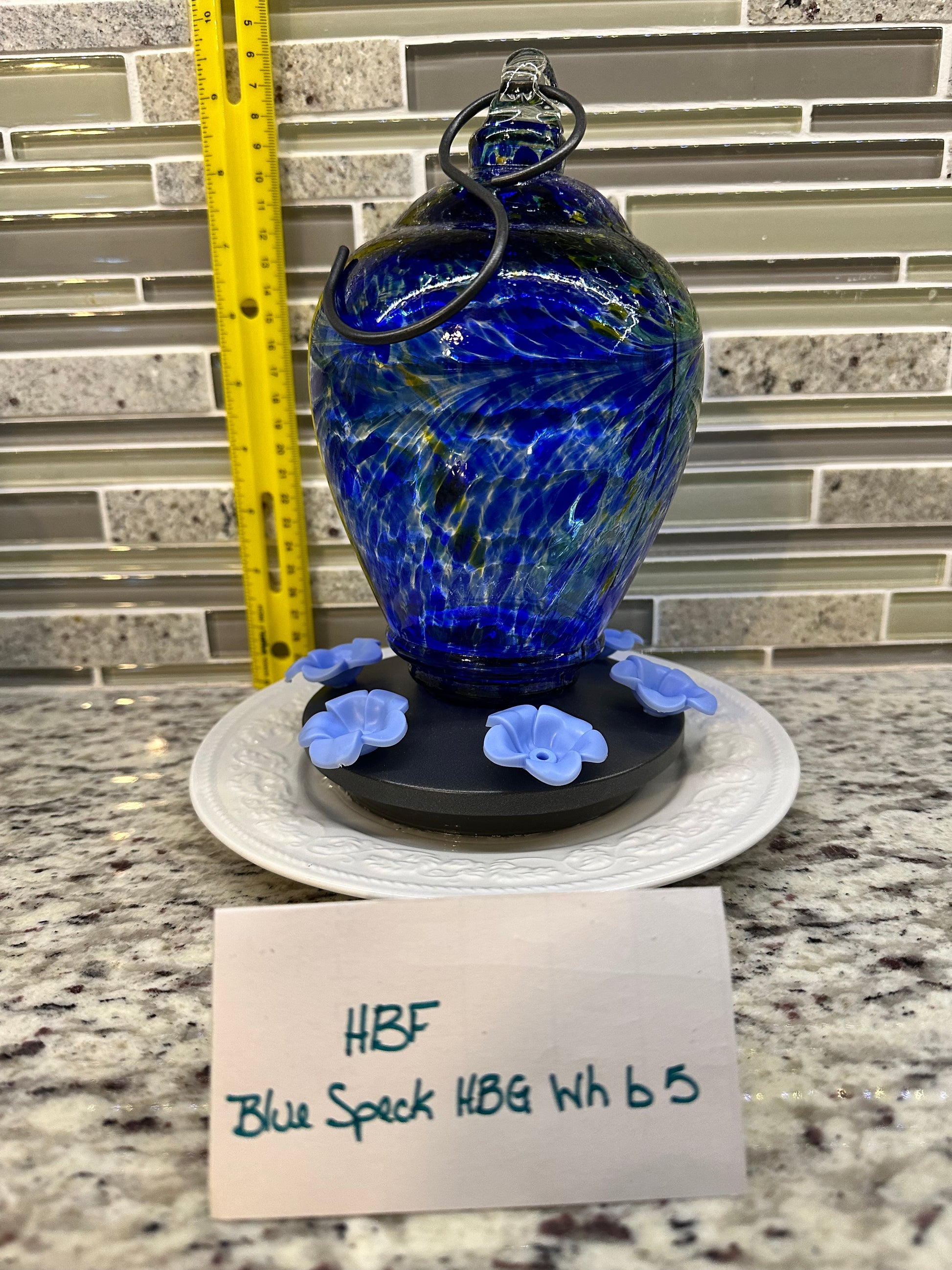 Hummingbird Feeder Blue Speck HBG White Bottom 5 & 6